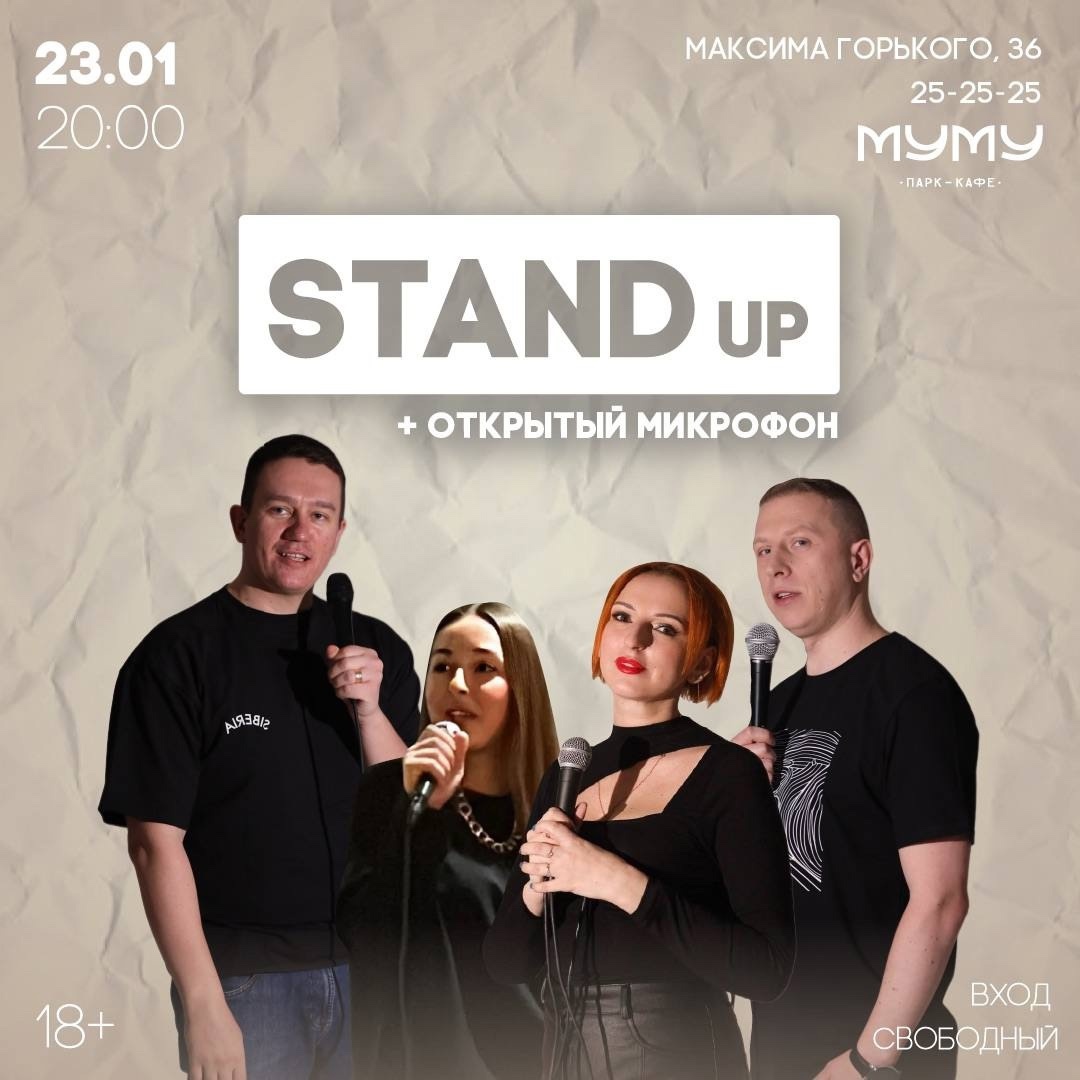 В этот четверг парк-кафе «Муму» станет настоящей площадкой для смеха и хорошего настроения. Приготовьтесь к вечеру, полному остроумных шуток и ярких выступлений талантливых комиков, которые подарят вам незабываемые эмоции